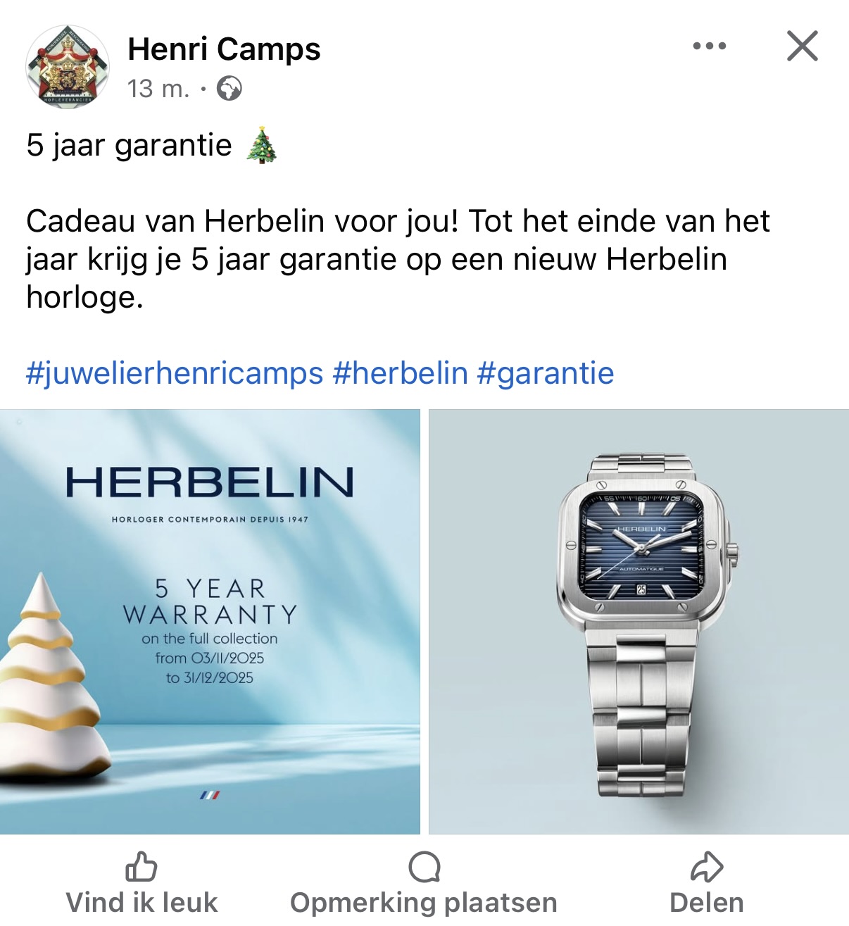 Tot het einde van het jaar krijg je 5 jaar garantie op een nieuw Herbelin horloge.